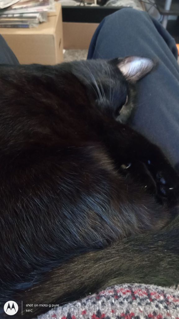I have a sleepy warm kitty cuddling in my lap. I should probably be doing laundry but Magic says otherwise. Who am I to argue with her logic.